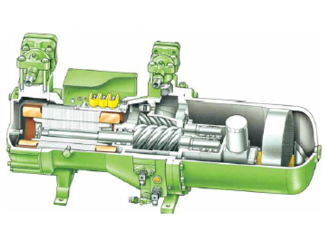 半封閉螺桿壓縮機(jī),氣體排出連續(xù)而沒有脈動(dòng),平衡性好,振動(dòng)小;結(jié)構(gòu)簡(jiǎn)單,易損零件少,維修量少;對(duì)濕沖程不敏感,無液擊危險(xiǎn)。