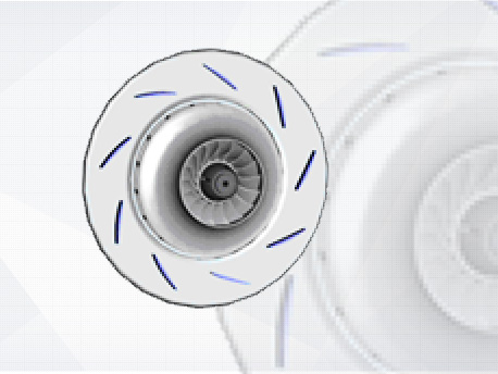 低稠度擴壓器設(shè)計,機翼型葉片對氣體導(dǎo)流, 地將高速氣體轉(zhuǎn)換成高靜壓氣體。在部分負荷下,葉片導(dǎo)流 減少回流損失, 部分負荷性能,擴展機組運行范圍,大幅度提升機組部分負荷性能